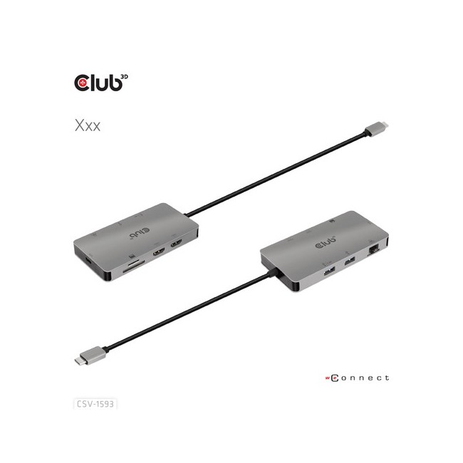 CLUB3D USB 3.2 GEN1 TYPE-C 8-IN-1 HUB WITH 2X HDMI, 2X USB-A, RJ45, SD/MICRO SD CARD SLOTS AND USB