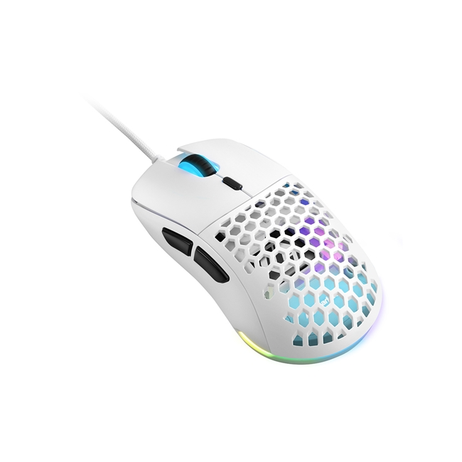 Il Light² 180, con i suoi soli 63 grammi di peso, è ufficialmente uno dei mouse più leggeri al mondo; questo lo rende particolarmente facile da usare. Grazie ai suoi tre piedini realizzati al 100 % in PTFE e al suo cavo ultraflessibile, scorrerà senza problemi su qualsiasi superficie. Il suo potente sensore ottico Pixart PMW3360, con un massimo di 12.000 DPI, consente di eseguire manovre particolarmente precise. In più, il design simmetrico e il rivestimento superiore a nido d’ape assicura al mouse una buona presa e una maneggevolezza in qualsiasi situazione.