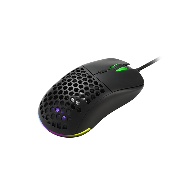 Il Light² 180, con i suoi soli 63 grammi di peso, è ufficialmente uno dei mouse più leggeri al mondo; questo lo rende particolarmente facile da usare. Grazie ai suoi tre piedini realizzati al 100 % in PTFE e al suo cavo ultraflessibile, scorrerà senza problemi su qualsiasi superficie. Il suo potente sensore ottico Pixart PMW3360, con un massimo di 12.000 DPI, consente di eseguire manovre particolarmente precise. In più, il design simmetrico e il rivestimento superiore a nido d’ape assicura al mouse una buona presa e una maneggevolezza in qualsiasi situazione.