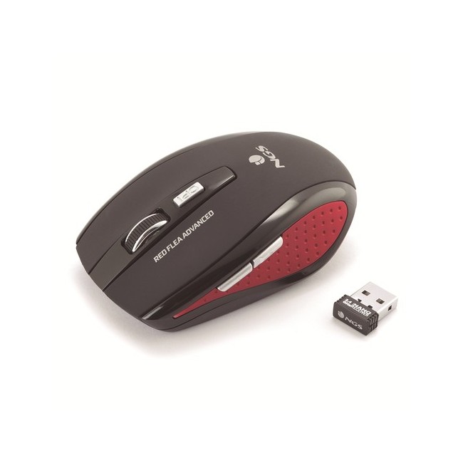 NGS Red Flea Advanced. Fattore di forma: Mano destra. Tecnologia di rilevamento del movimento: Ottico, Interfaccia dispositivo: RF Wireless, Risoluzione movimento: 1600 DPI, Tipo di pulsanti: Tasti premuti, Numero di tasti: 5, Tipo di scorimmento: Rotella. Colore del prodotto: Nero, Rosso