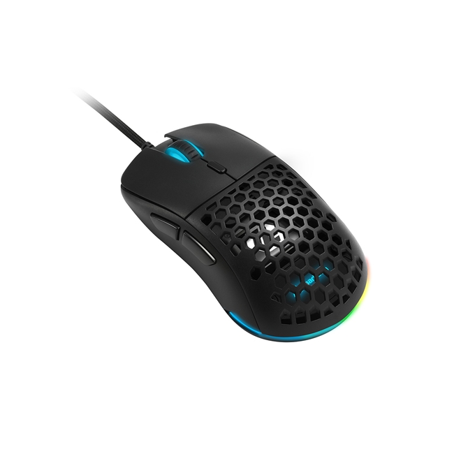 SHARKOONIl Light² 180, con i suoi soli 63 grammi di peso, è ufficialmente uno dei mouse più leggeri al mondo; questo lo rende particolarmente facile da usare. Grazie ai suoi tre piedini realizzati al 100 % in PTFE e al suo cavo ultraflessibile, scorrerà senza problemi su qualsiasi superficie. Il suo potente sensore ottico Pixart PMW3360, con un massimo di 12.000 DPI, consente di eseguire manovre particolarmente precise. In più, il design simmetrico e il rivestimento superiore a nido d’ape assicura al mouse una buona presa e una maneggevolezza in qualsiasi situazione.