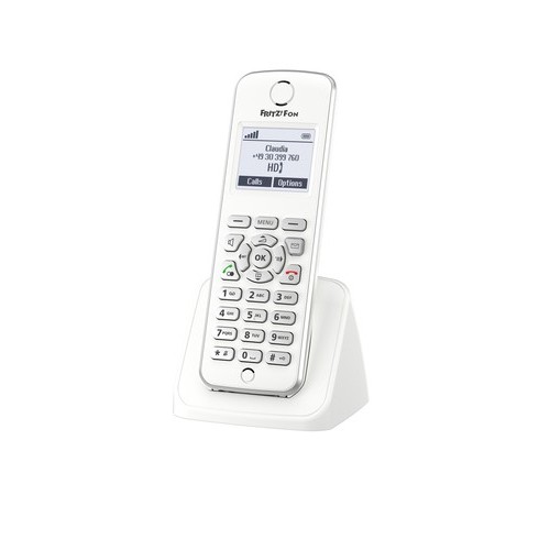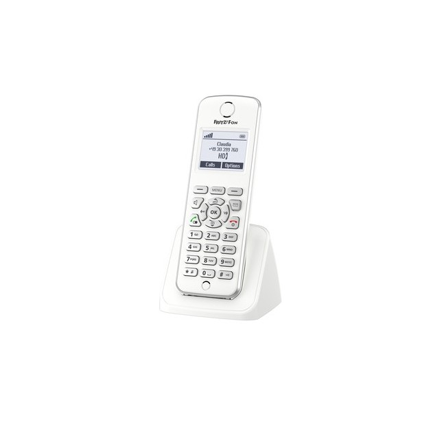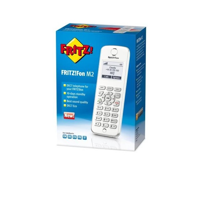 Il telefono ergonomico cordless FRITZ!Fon M2 è stato ideato appositamente per il FRITZ!Box con stazione base DECT. La grande dimensione delle scritte sul display monocromatico aiuta a navigare nei menu e nella guida telefonica, i grandi tasti luminosi ne permettono un comodo uso anche in ambienti bui.